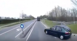 Je hebt van die bestuurders die beter hun rijbewijs direct in kunnen leveren. Op deze provinciale weg gooit een automobilist namelijk alsof er niks...