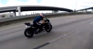 Deze motorrijder vond het een goed idee om zonder beschermende kleding een rite te maken op een de snelweg. Maar met snelheden boven de...