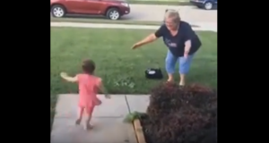 Deze kleine meid heeft duidelijk haar voorkeur als opa en oma op visite komen.