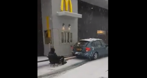 De sneeuw zorgt voor heel veel pret in het land. Zo zagen we gisteren al iemand met zijn slee door de McDrive gaan en...