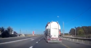 Dronken automobilist wordt ingesloten door 3 vrachtwagenchauffeurs!