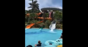 Leuk toch zo'n zwembad met een paar dikke glijbanen voor de kids. Maar je hebt altijd baas boven baas die even moeten laten zien...