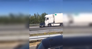 Soms rij je op de snelweg en zie je opeens de gekste dingen gebeuren. In dit geval wordt een auto overdwars voortgeduwd door een...