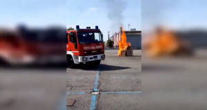 Ook de chauffeur van de brandweerauto moet weleens oefenen…
