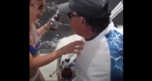 Probeert er eentje stoer te doen in zijn gepimpte auto op...