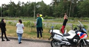 Deze mensen kregen het vast heel benauwd toen ze nest naast de snelheid neerstreken....