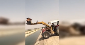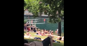 Deze gasten hebben een goed idee om wat af te koelen van de hitte. Namelijk plaats te nemen in een bakje wat gemonteerd is...